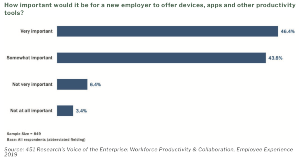 A 451 Research survey revealed that 89% of people rate devices, apps, and other productivity tools as important for a new employer to provide.