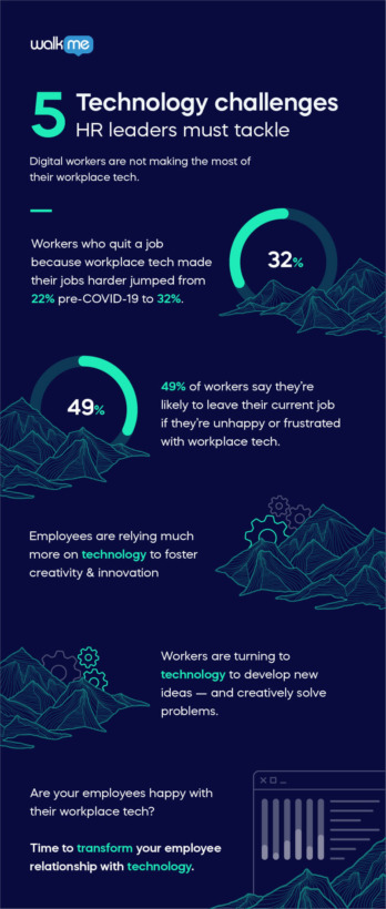 WalkMe anticipates HR leaders will be busier than ever overcoming the following 5 major technological challenges: