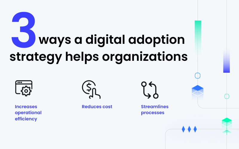 By helping to integrate new digital systems, processes and tools into daily operations, a digital adoption strategy helps organizations: