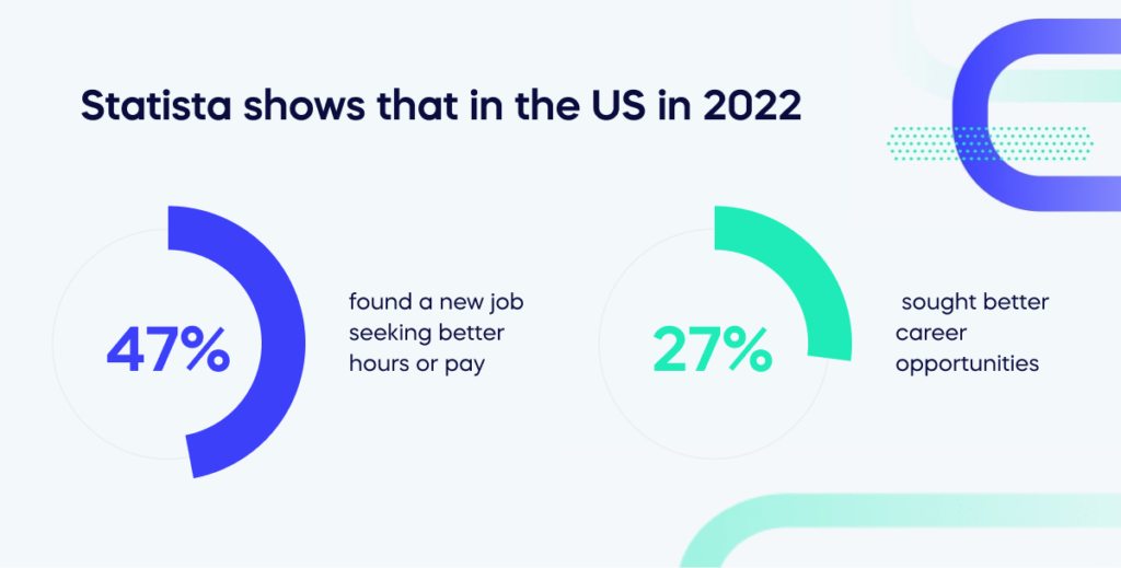 Statista shows that in the US in 2022, 47% found a new job seeking better hours or pay, and 27% sought better career opportunities. Anticipate and negate these reasons for employees to depart by knowing what is important to them and delivering on these needs.