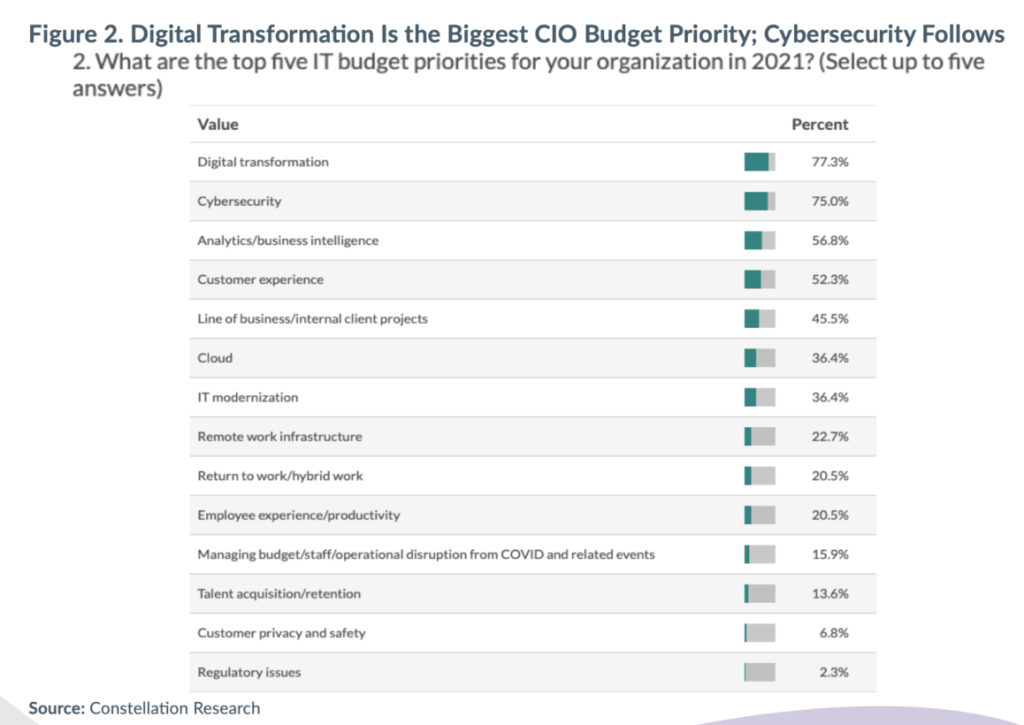 Taking the top spot over cybersecurity at the start of 2021, the number one priority of Fortune 500 CIOs surveyed by Constellation is digital transformation. It seems only fitting.