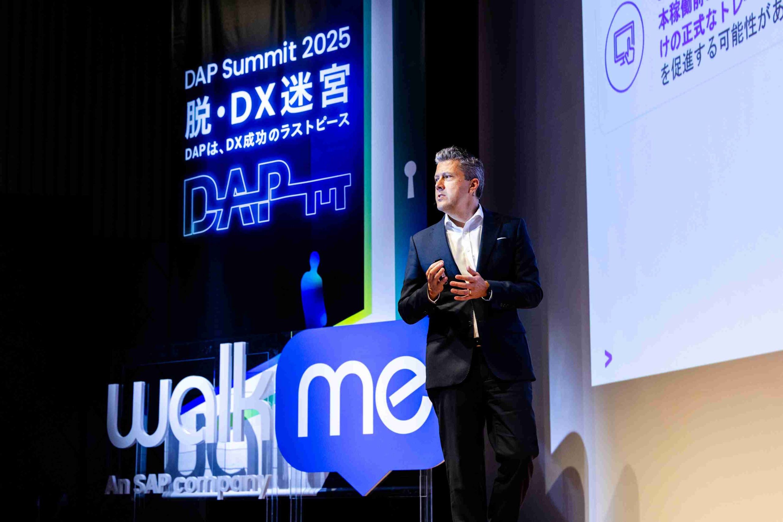 WalkMe株式会社は、2025年7月16日、TODAホール&カンファレンス東京(東京都中央区)にて、「DAP Summit 2025」を開催しました。2回目となる本イベント、参加登録者は1100名を超え、初開催だった昨年に引き続き満員御礼。本年度は、テーマを「脱・DX迷宮 ~DAPは、DX成功のラストピース」と銘打ち、WalkMe、SAP、ユーザー企業、パートナー企業、特別ゲストによる計12本のセッションが実施され、多種多様な視点からDX戦略を取り巻く環境とその最新事例について紹介されました。当日の講演動画はこちら