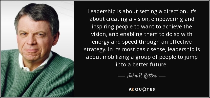 The above steps were taken from Kotter’s 2014 version of his earlier model, Leading Change.