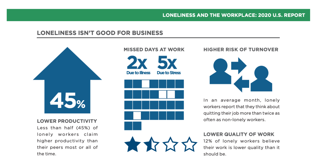 Loneliness in the workplace is especially acute for new employees. It is difficult to be a newcomer to an established team and adapt to a different work culture. Expectations are high, and new employees are more on edge to not only prove themselves, but to be socially accepted.