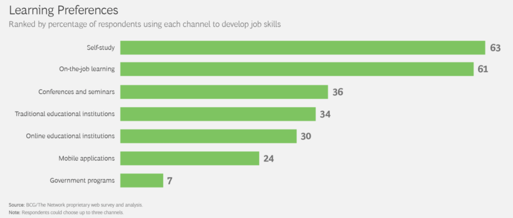 Upskilling employees on new software at scale cannot be achieved by traditional methods like in-classroom learning sessions. Employees favor autonomy as shown by the results of the Decoding Global Talent Report, with 61% of respondents preferring online training when it came to acquiring new skills for their jobs.