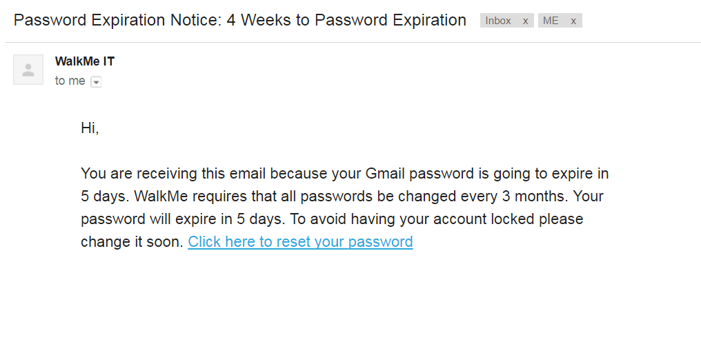 A few months ago, WalkMe employees received a seemingly routine email in their inbox, notifying them of an impending expiration of their Gmail account password.