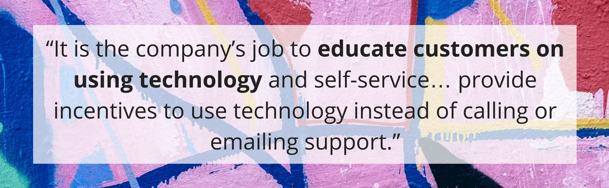 Provide incentives to use technology instead of calling or emailing support. I’ll give you an example, I just received an email from the hotel I am staying at tomorrow saying that if I check in through their app, I will receive an extra 500 points. In a sense, these companies are bribing customers to use their online options. Airlines have employed a similar method to shift passengers from in-person check-ins to online.