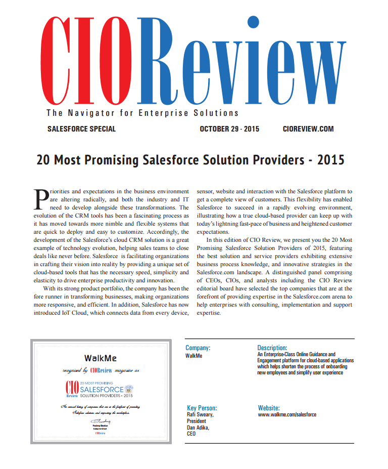 WalkMe Selected as Top 20 Salesforce Solution Providers