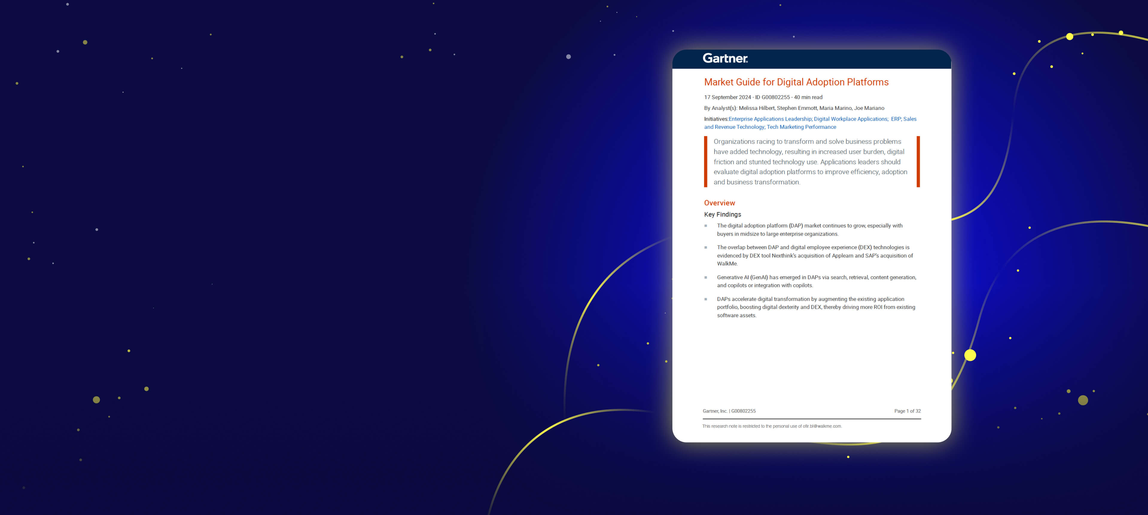 The Gartner Market Guide reveals a transformative future for Digital Adoption Platforms (DAPs). As organizations increasingly rely on technology to drive growth, DAPs are evolving to meet the complex needs of the modern digital workplace.