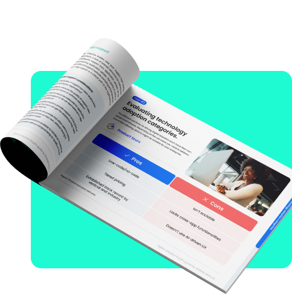 In this guide, we explore the different categories of technology adoption platforms, including a comparison of leading vendors. Learn about the pros and cons of digital adoption platforms (DAP), digital adoption solutions (DAS), product tours, product experience (PX) tools, in‒app guides, and learning management systems (LMS) to help you find the solution that best meets your enterprise’s needs.
