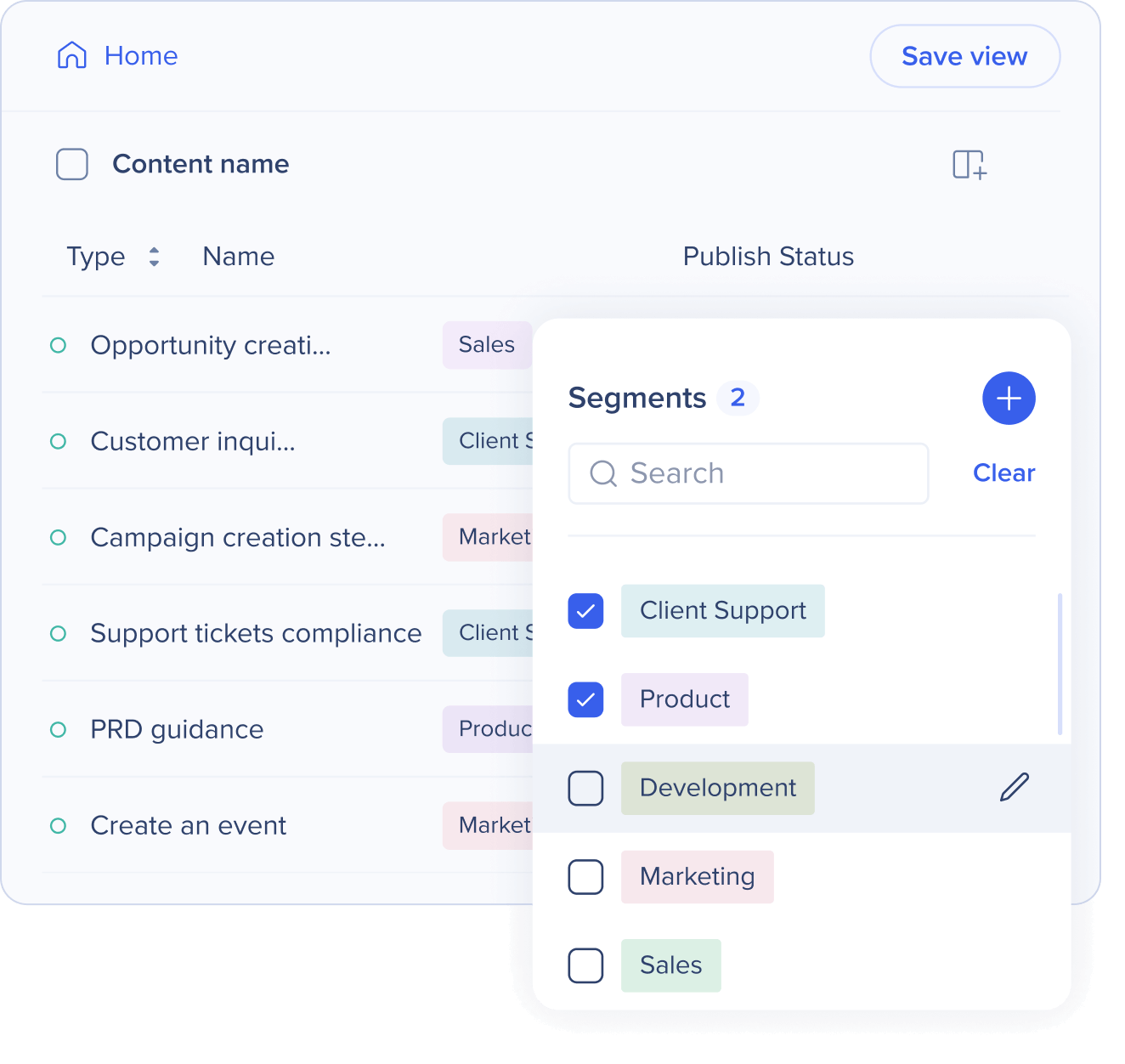 Gérez votre guide intégré à l'application sans effort grâce aux vues enregistrées et à une segmentation facile dans le Gestionnaire de contenu.