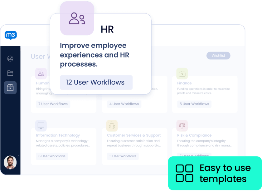 Ou commencez de zéro ! WalkMe propose des solutions prédéfinies personnalisables au niveau du flux de travail, de l'application ou de la tâche, afin que vous puissiez atteindre plus rapidement que jamais le délai de rentabilisation.