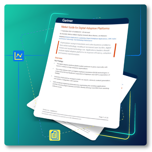 企業が先を争うように変革とビジネス上の問題解決を急ぎ、テクノロジーが追加された結果、ユーザーの負担が増加し、デジタルフリクションが起こり、テクノロジーの利用に支障が生じています。アプリケーションリーダーは、効率性と定着率を高めてビジネス変革を推進するために、デジタルアダプションプラットフォームを評価する必要があります。