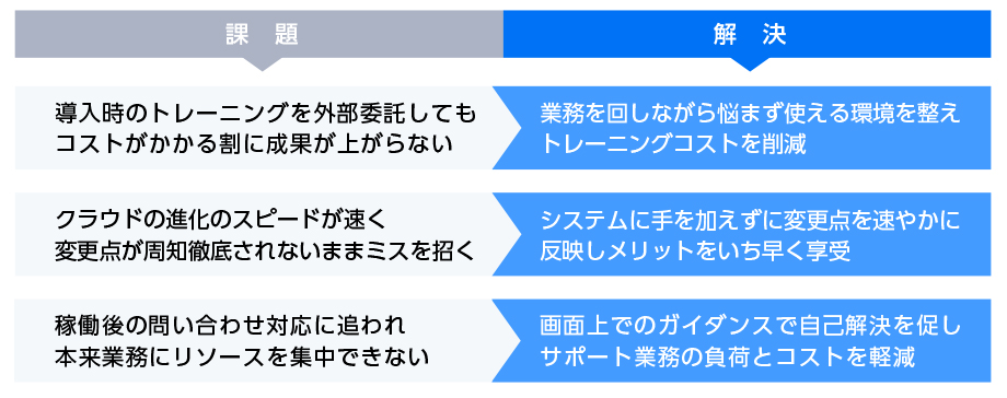 手順書ではクラウドの進化のスピードに追随できず、結果的に古い手順書を見ていたり、手順が正しく伝わらなかったりすると、思わぬトラブルの原因になります。だからといって、大企業のようにマニュアルチームを用意できるほど人的リソースに余裕はありません。教育を外部委託するとなると少なくないコストがかかりますし、その割に成果が上がらず、稼働後の定着化は独力になってしまいます。どうしたものかと以前から頭を悩ませていたのです。」