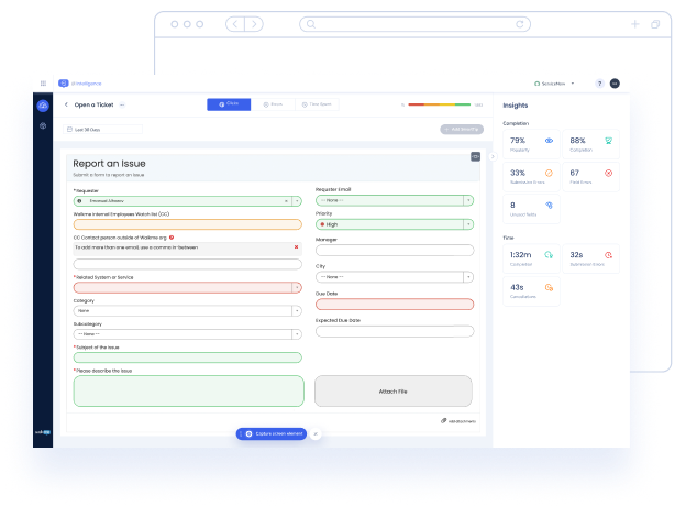 Creating exceptional employee experiences can be done from anywhere with no guesswork required. With WalkMe’s real-time user analytics, pinpoint where your employees are struggling, then design experiences that guide users to success within and across applications.